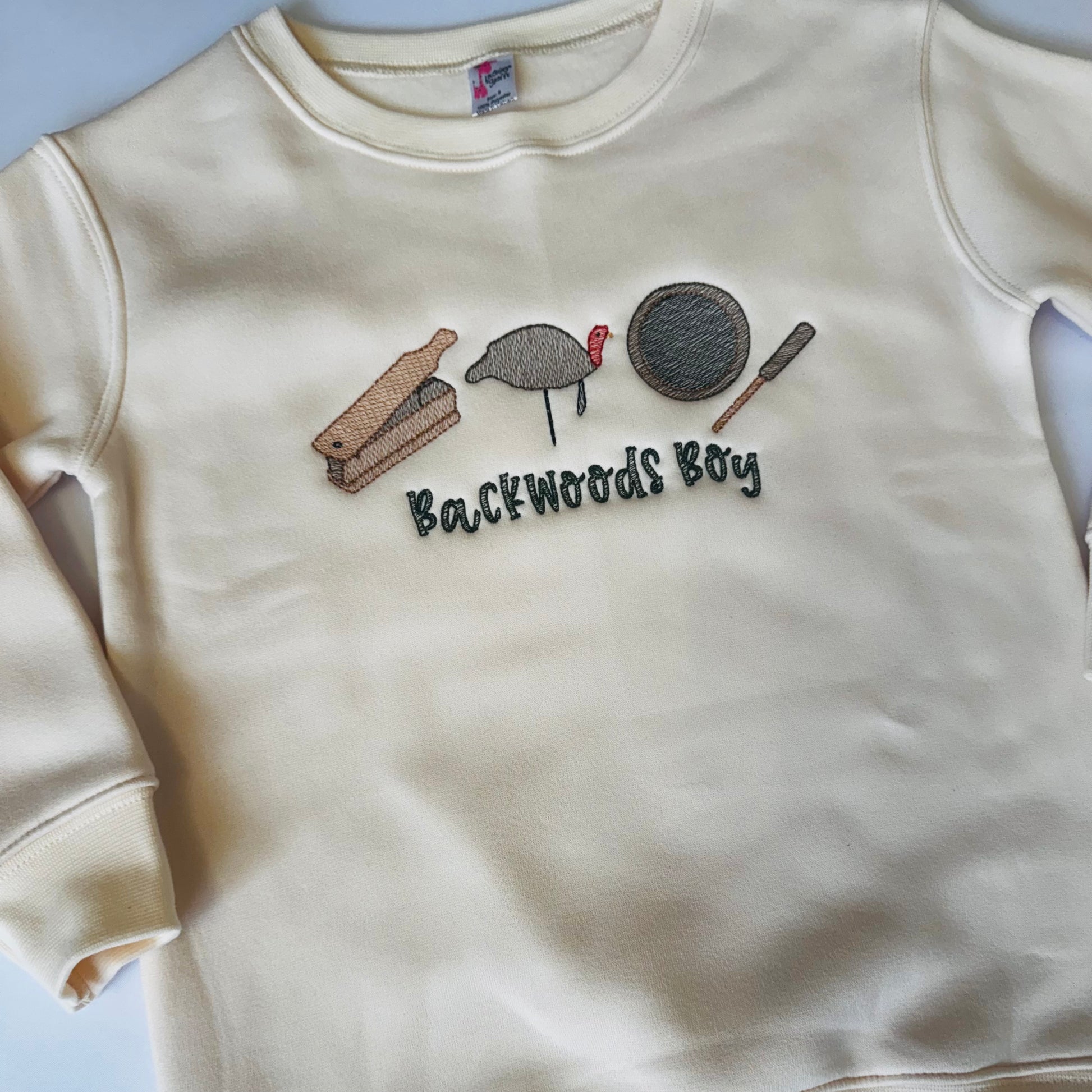 Let your little guy show off his wild side with our Backwoods Boy embroidered crewneck! Designed for tiny adventurers with big country spirit, this cozy sweatshirt is perfect for crisp mornings, family outings, or just relaxing in rustic style. The classic crewneck fit and soft, durable fabric make it a go-to favorite for babies and toddlers alike.