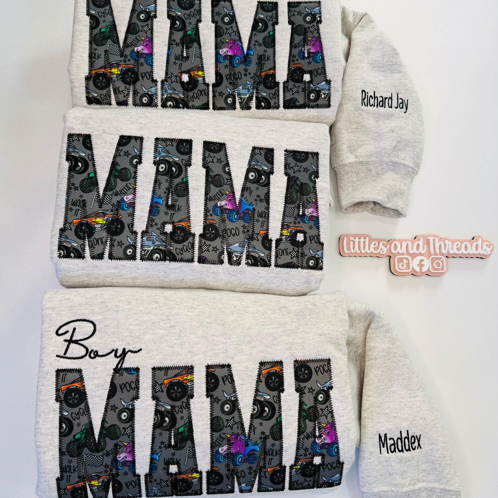 Calling all Monster Jam mamas! Show off your truck-loving spirit in style with our custom embroidered appliqué Monster Jam crewnecks. These cozy crewnecks are soft, warm, and perfect for wearing to Monster Jam events, birthday parties, or matching with your little monster truck fan. It’s the ultimate way for proud truck moms to stay comfy and cute while cheering on the big trucks!