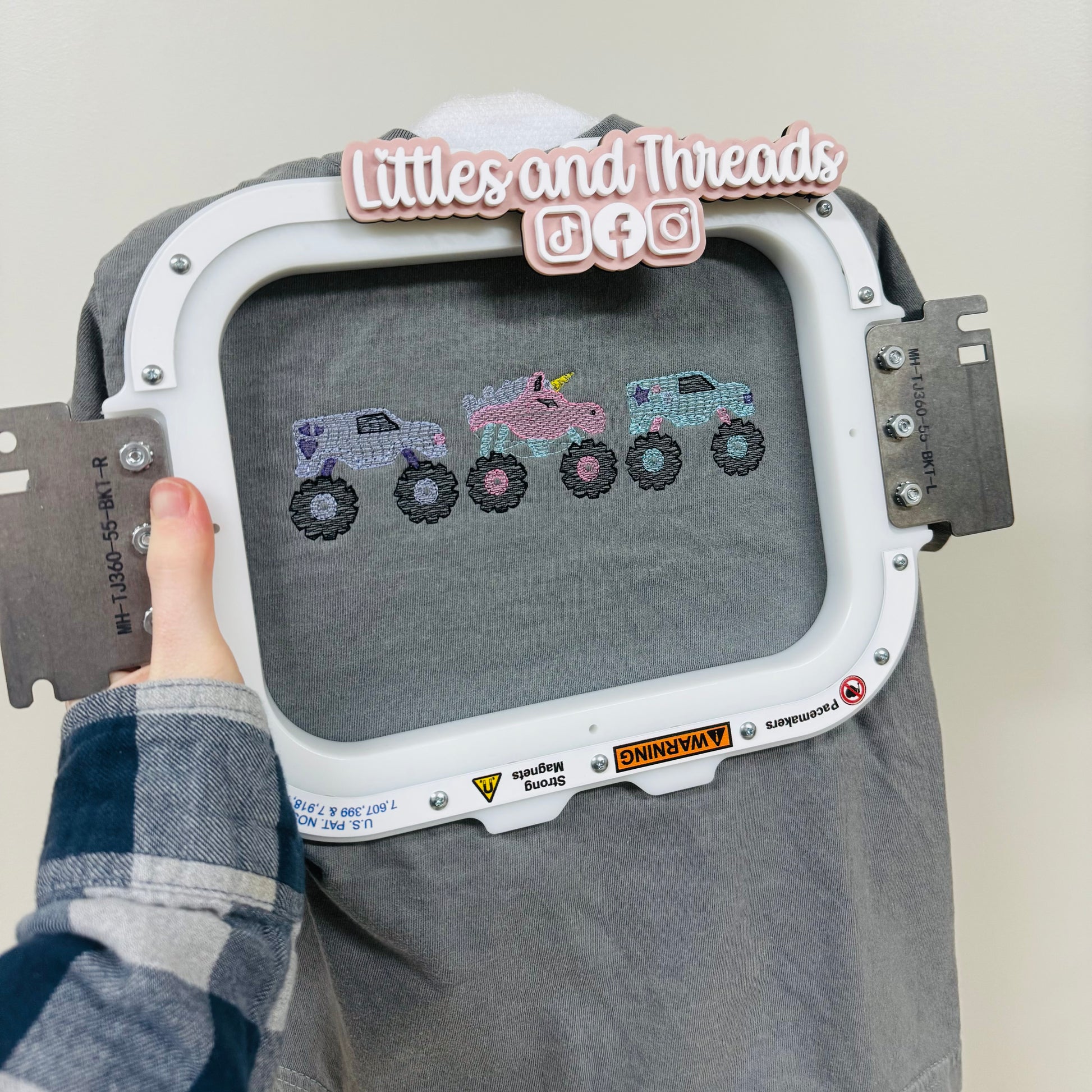 Embroidered monster truck girly tee is 100% ringspun cotton- preshrunk
