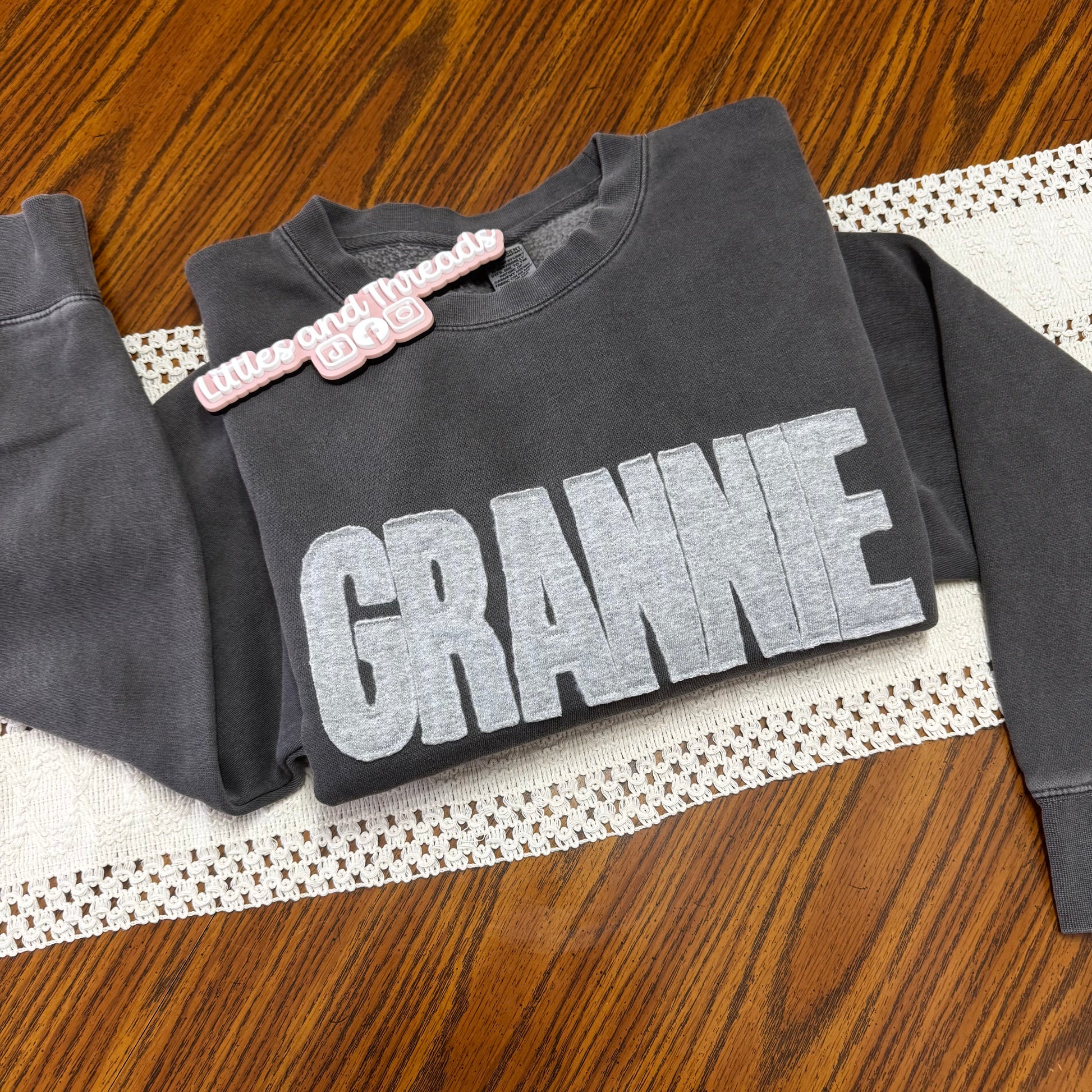 **You can choose to have your word embroidered with the same shade fabric as your sweatshirt or a different color like the one pictured**