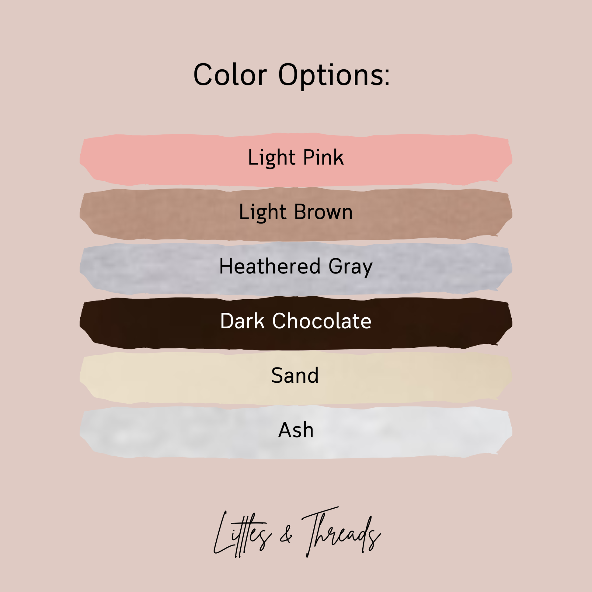 Embroidered onto, 80% cotton / 20% polyester,( for colors light pink, heathered gray, light brown)