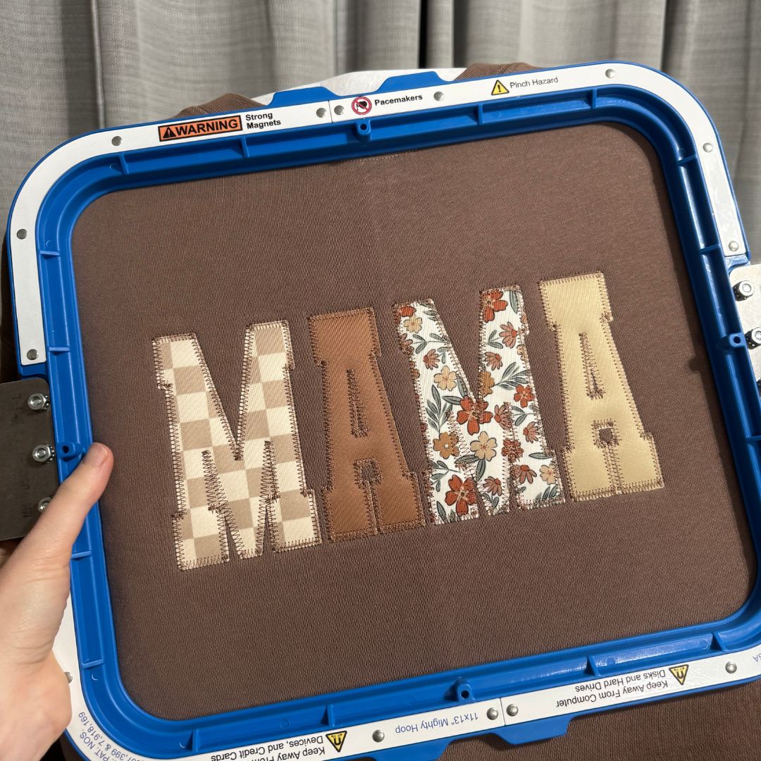 Embroidered onto, 50/50 blend of cotton and poly ( for colors dark choc., ash, sand)